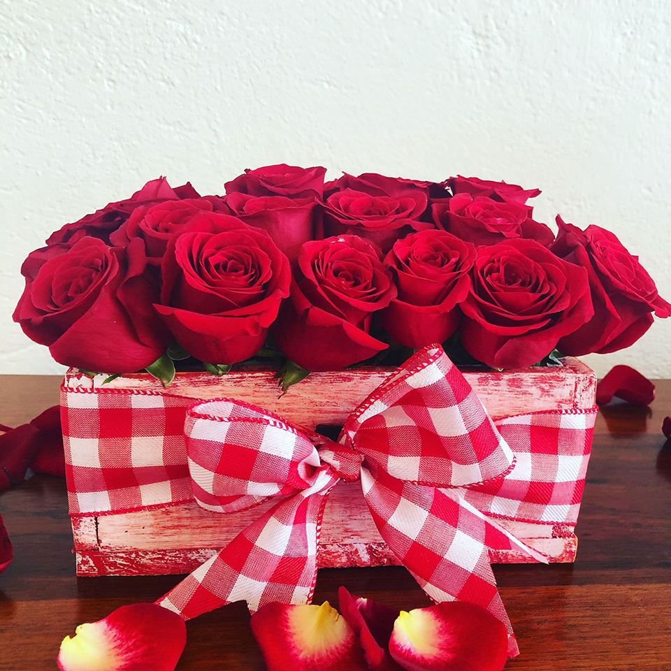 Caja vintage con 24 rosas.